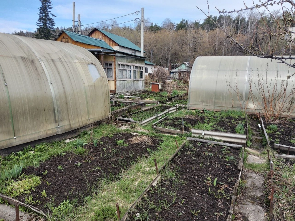 На участке расположен садовый домик 13,4м2. с открытой верандой.
