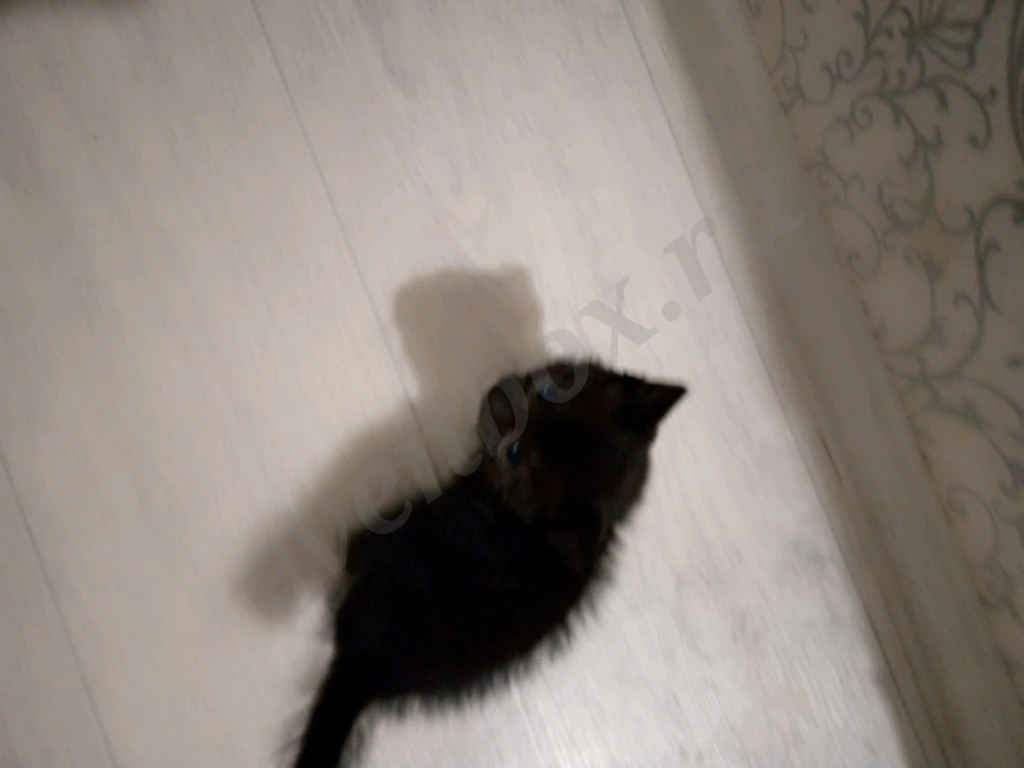 Чёрная, женского пола, синие,голубые глаза, любит умываться, спокойная, спать, кушать, играть, не любит проводить время в одиночестве.